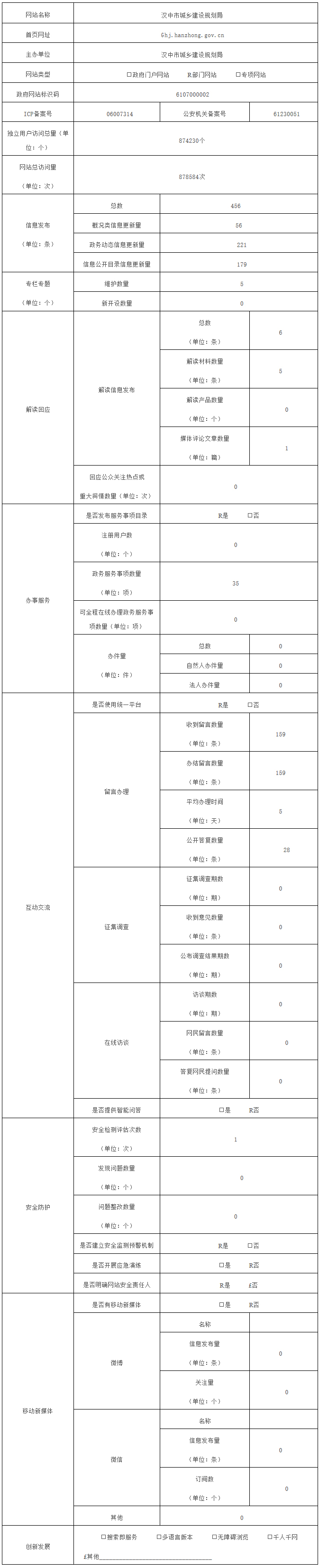 汉中市城乡建设规划局网站工作年度报表(2018年度)